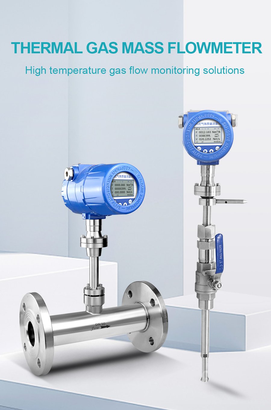 Thermal gas mass flow meter adopts advanced thermal diffusion technology and isothermal difference method for direct mass flow measurement, without