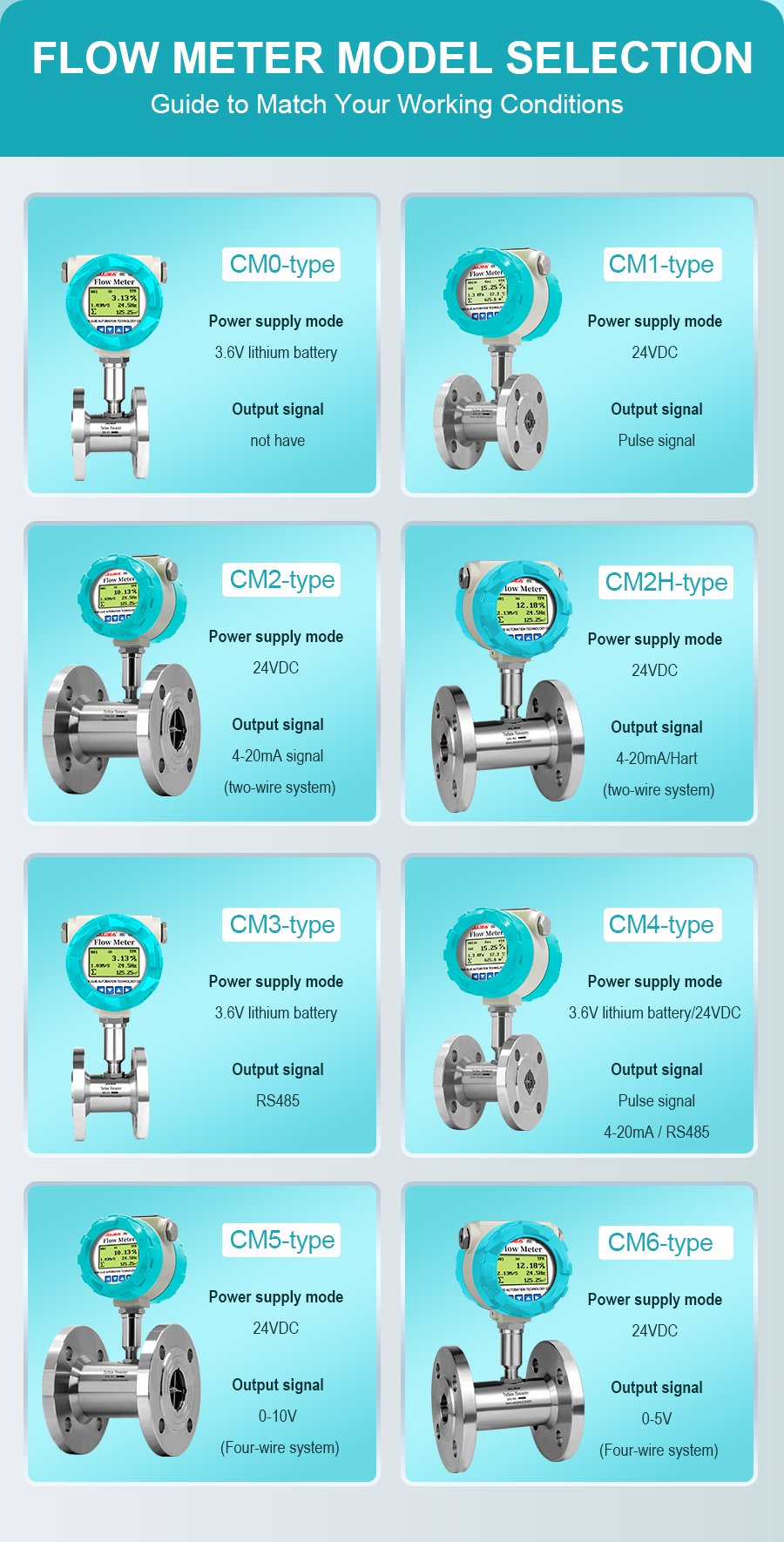 We have products like oval gear flow meter, turbine flow meter, electromagnetic flow meter, vortex flow meter, mass flow meter, ultrasonic flow meter, radar level meter, precession vortex flow meter, etc.